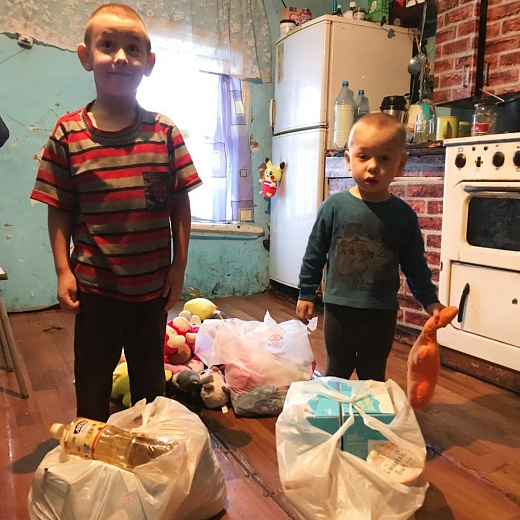 10 продуктовых наборов, стиральные порошки и кондиционеры для белья получили семьи Черепановского района.